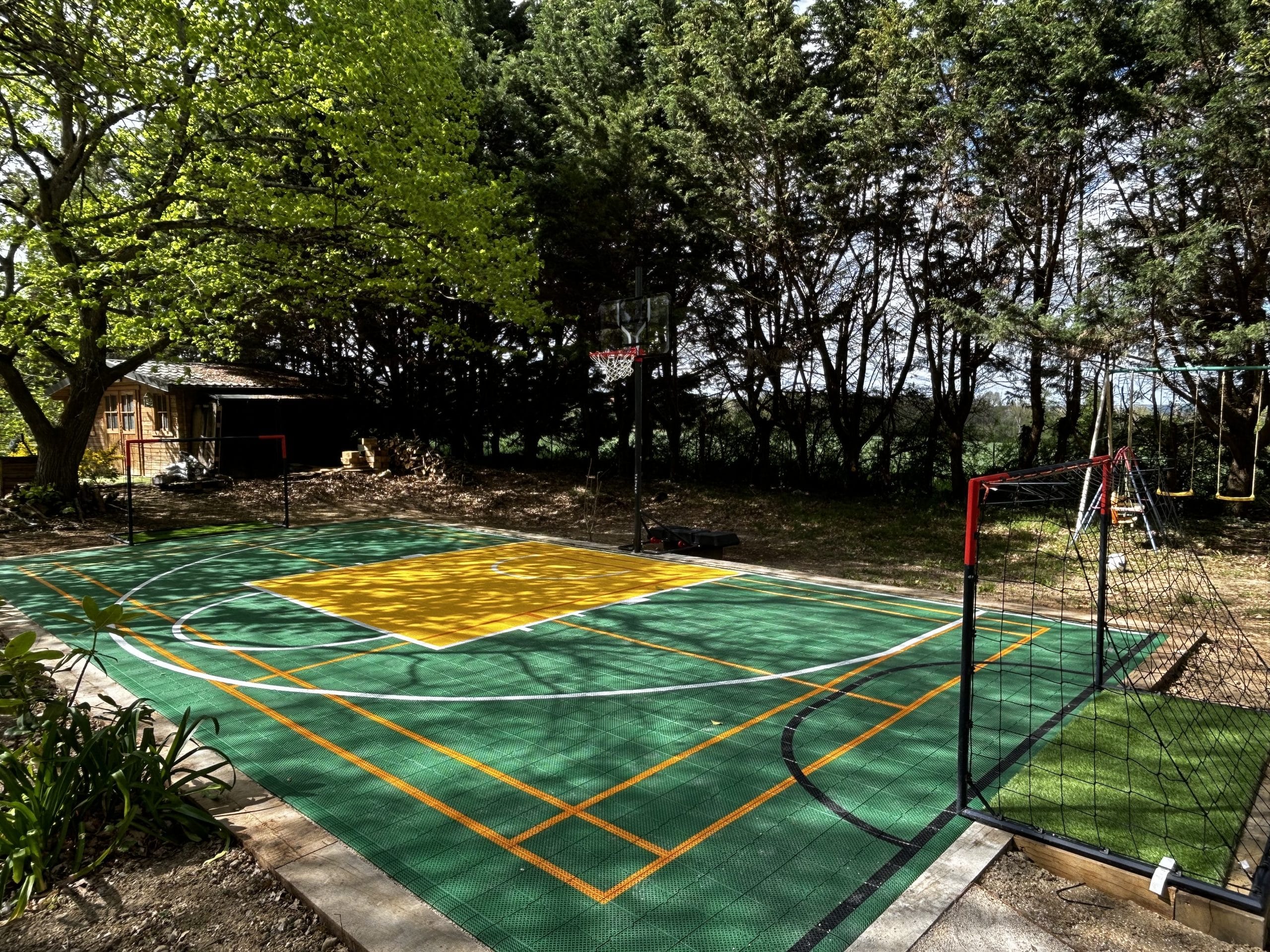 Chaque sport possède ses propres règles et ses dimensions de terrain spécifiques. Chez Holly Sport, nous adaptons chaque projet aux disciplines choisies. Par exemple, pour un combo basketball + football, nous proposons un but multisport combinant cage de foot et panier de basket intégré. Cela permet de conserver un terrain fonctionnel pour les deux disciplines, sans compromis sur la jouabilité.